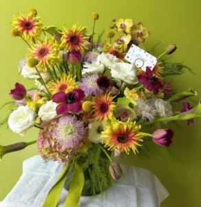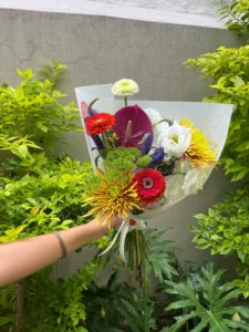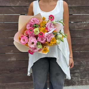 Personaliza tu ramo de forma rápida y sencilla. Elige entre nuestros tres tamaños disponibles —chico, mediano o grande— y cuéntanos qué colores, tipos de flores o estilo son de tu preferencia y te lo haremos a tu gusto